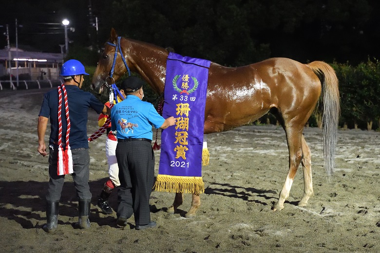 勝ったスペルマロンはこれで高知での収得賞金が9634万5000円となり、あと約370万円で“高知1億円ホース”が誕生する。かつて売り上げがどん底の時代には考えられなかったタイプのスターホースの誕生と言えるだろう。珊瑚冠賞はJBCクラシック指定競走ではあるが別府調教師は「JBCに出走したい気持ちもありますが、この馬の気性的に遠征がどうかということと、1億円ホースにすることが目標のため、今年は高知に専念したいと思います。それから遠征を考えたいです」と話した。