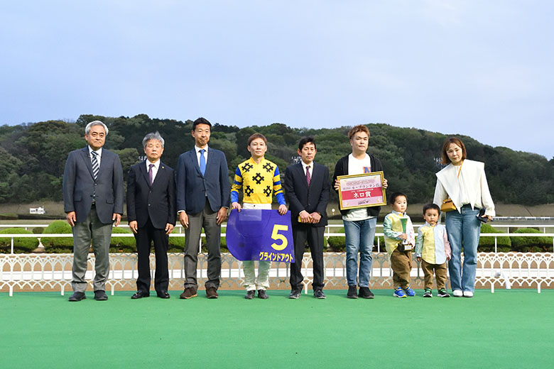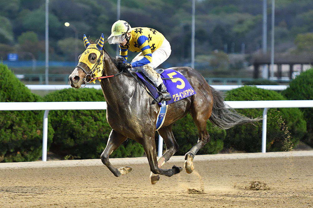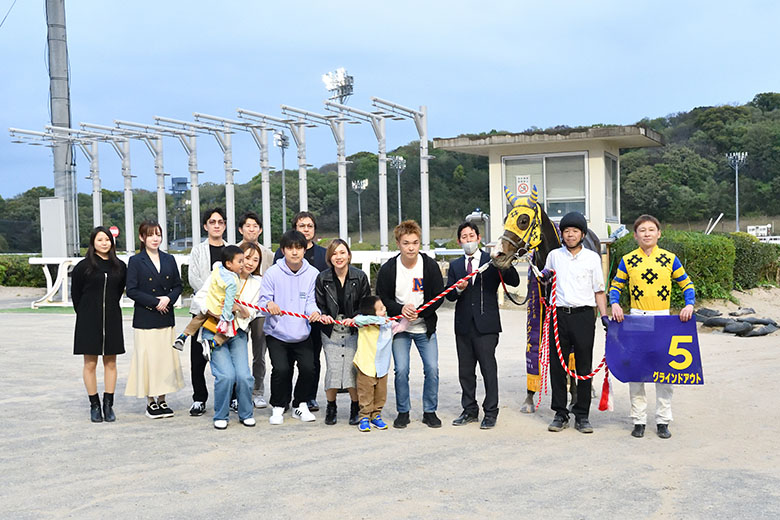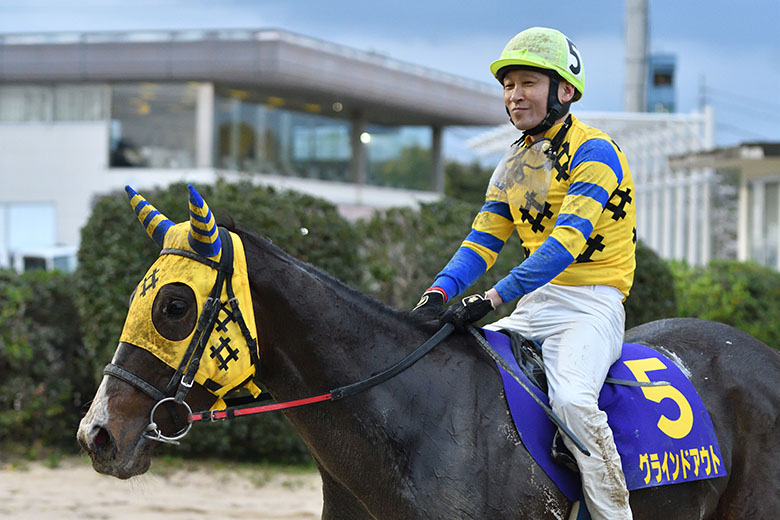 グラインドアウトは地元では4戦2勝で臨んだネクストスター高知で10着に敗退。2度目の重賞挑戦は今回と同じ佐賀1800メートルが舞台だった花吹雪賞で、ピクシースカイ(高知)に8馬身差を付ける圧勝。今回も同様に3番手から自ら動いて抜け出す競馬で、GDJ3歳シーズンの他地区15ポイントを獲得。今後はのじぎく賞(5月9日、園田1700メートル)へ向かう見込みとのこと。