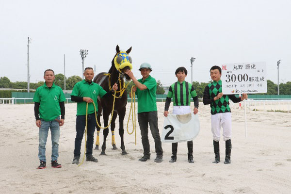 丸野勝虎騎手(愛知)は、5月18日(木)の名古屋競馬第8競走をフライシュッツで優勝し、1992年4月の初騎乗以来、20,192戦目にして地方競馬通算3,000勝を達成しました。